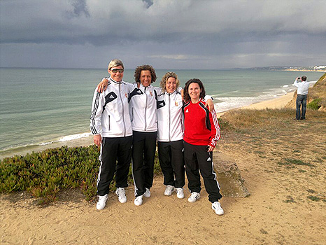 Dombai-Nagy Anett (tweede van links) met rechts naast haar Pádár Anita en Smuczer Angéla, en links Szeitl Szilvia, drie ex-collega's internaionals. |