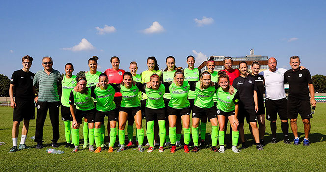 Fogl Katalin met het team van Ferencvárosi TC in juli 2018. |