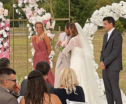 Katinka en Máté bij hun huwelijk op 22 augustus 2022. |