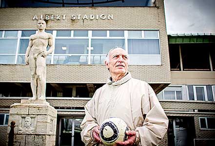 Juhász István voor het 'Albert Stadion' van Ferencváros.