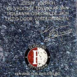 In Rotterdam werd deze gedenktegel door Feyenoord aan Kiprich opgedragen. |