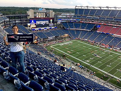 Rita als supporter van de New England Patriots, winnaar van de Super Bowl 2017 in de USA. |