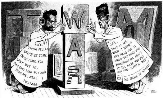 | De strijd tussen de krantenmagnaten, Pulitzer en Hearst. |