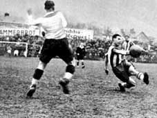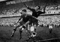 Wanneer Sárosi in actie kwam was er steeds gevaar. (Foto's Hongaars Sportmuseum) |