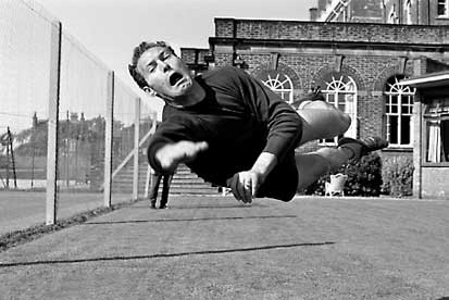 Szentmihályi Antal met een tussenkomst tijdens een wedstrijd voor de Beker der Jaarbeurssteden Newcastle United-Újpest Dózsa. |