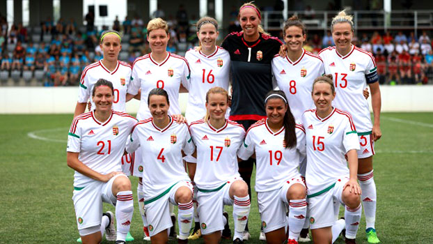 Team: (staand) Szarvas Alexandra, Hummel-Smuczer Angéla, Tálosi Szabina, Szőcs Réka, Szabó Viktória en Jakabfi Zsanett;