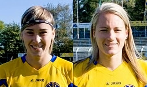Tóth Gabriella bij 1. FC Lokomotive Leipzig. Op de foto rechts samen met Szuh Erika, ploegmate. |