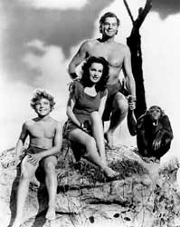 Tarzan en Jane, hier met Maureen O'Sullivan (zes films)...